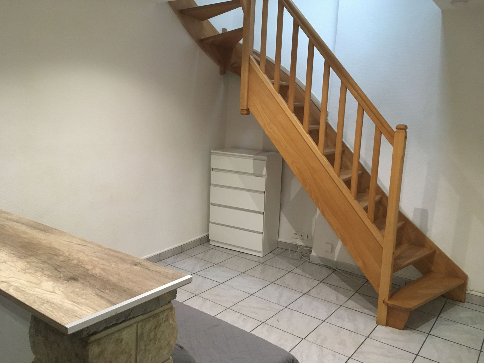Situé au 1er étage d'une petite copropriété, le logement est constitué au premier niveau, d'un entrée, un salon avec cuisine équipée, d'une salle d'eau avec WC et au deuxième niveau une chambre