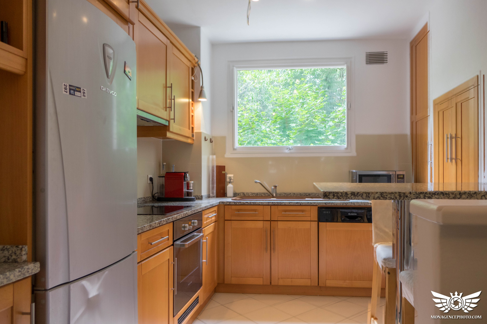 La résidence est calme dans un écrin de verdure.
