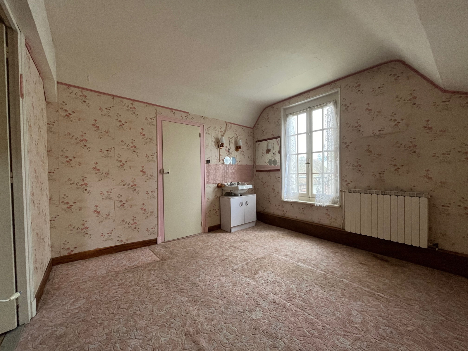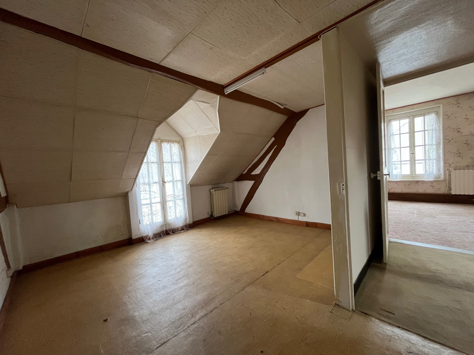 A l’étage le palier distribue 2 chambres dont une avec point d’eau, un dressing et un grenier de 26 m² permettant un agrandissement de la maison